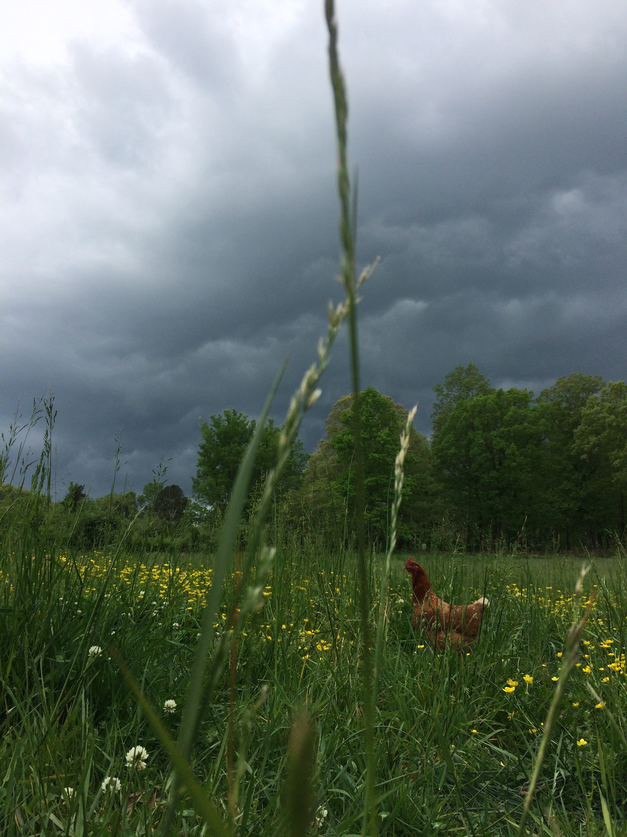 During this resting state the nitrogen from the manure has opportunity to assimilate into the soil, nourishing the ever-growing, dense and frothy brown dirt while bolstering new, greener and healthy growth in the grass (among many other very cool facts I can tell you about later ;-). After the needs of the field have been attended to through this resting period, it’s ready once again to give to and nourish the next rotation of animals.